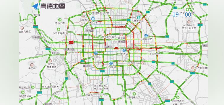 晚高峰期间,城区环路、东六环部分路段,以及万泉河路至圆明园西路、通惠河北路、莲石东路等城区道路出城方向车流集中,京藏高速、京承高速、京通快速、京港澳高速、机场高速等高速公路出京方向车流量大,高峰时段为17:30—20:00,周五和限行尾号4和9的周一通行压力将尤为突出。