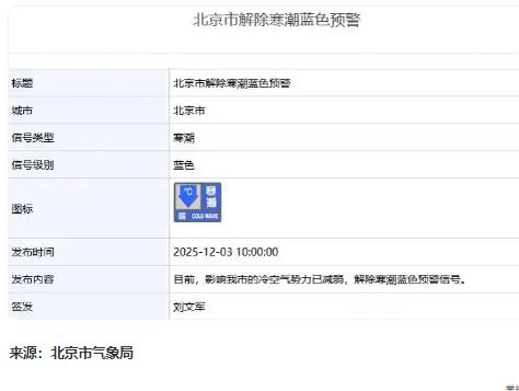 目前,影响我市的冷空气势力已减弱,解除寒潮蓝色预警信号。